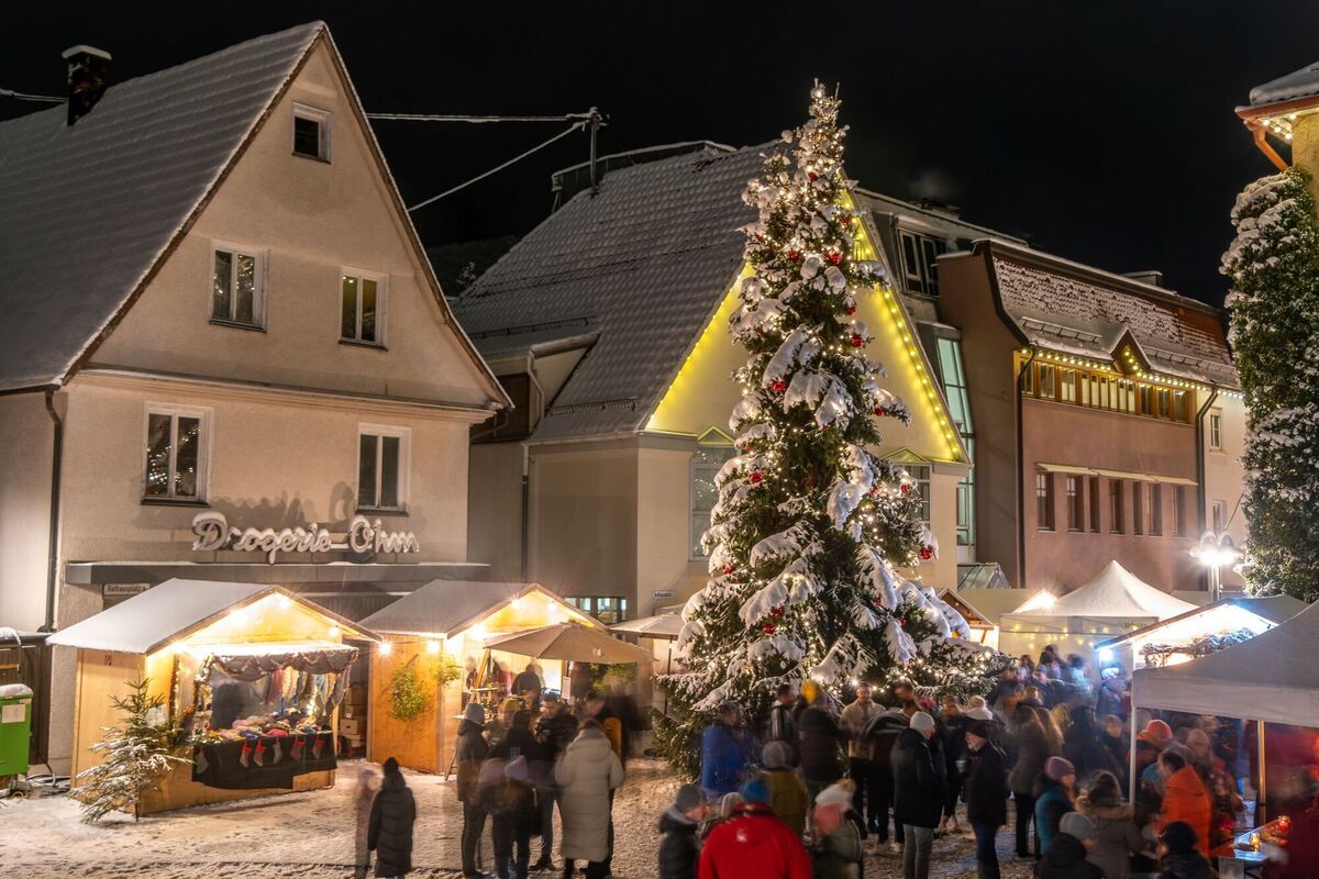 Eines der drei Eninger Motive zeigt den Weihnachtsmarkt rund um das Rathaus. Der Kalender eignet sich auch als Weihnachtsgeschenk aus Eningen.