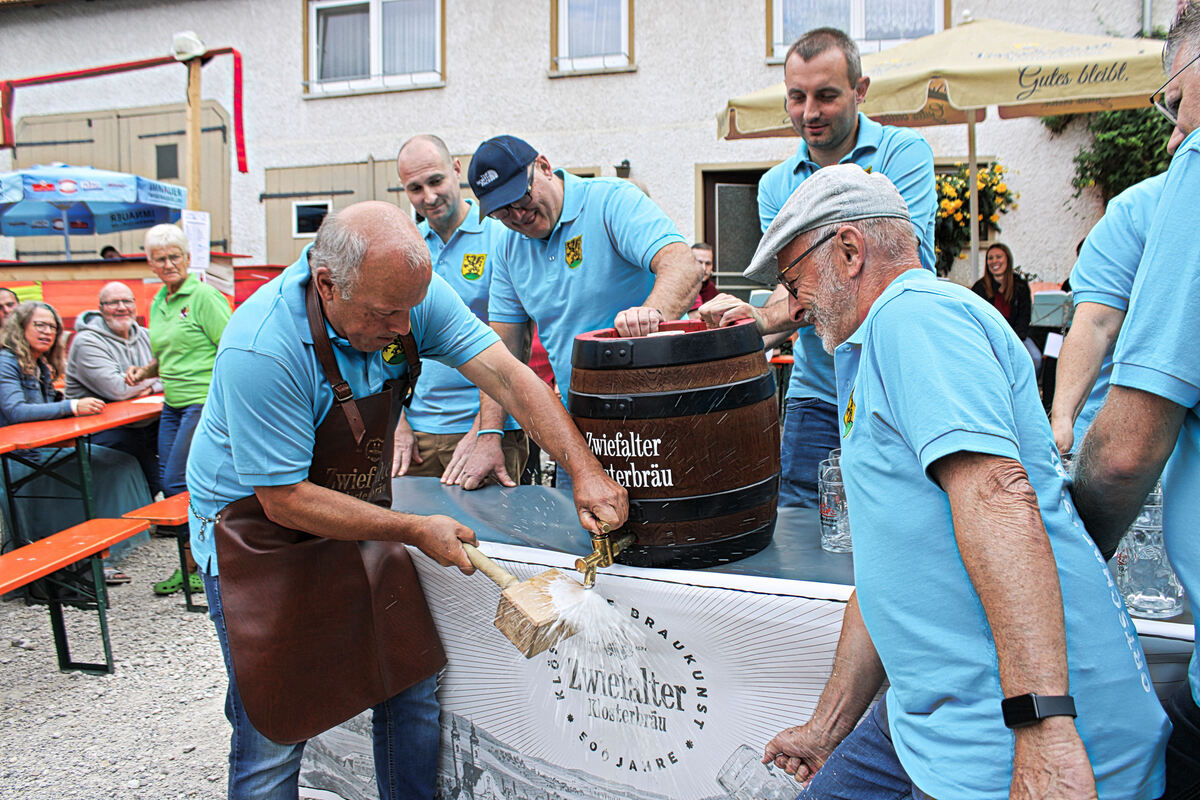Am Samstag brachte Ortsvorsteher Martin Schwarz mit fünf Schlägen das Freibier zum Fließen.