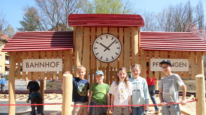 Bürgermeister Stefan Wörner freute sich insbesondere darüber, dass so viele Spenden zusammengekommen sind. Insgesamt sind mehr als 12.000 Euro bei der Stadtverwaltung eingegangen. Die Gesamtkosten für den Umbau sind mit etwa 180.000 Euro veranschlagt. Für die Konzeption seien Ideen der Anwohner und aus der Bürgerschaft mit aufgenommen worden. Die Schüler hatten um ein »Häusle« gebeten, so Wörner. Nun können sie in einer kleinen Bahnhofshalle chillen. Denn das Thema des Spielplatzes passt zur Geschichte des Geländes. Hier fuhren früher Züge von Reutlingen bis Honau. Ein Klettersilo mit Rutsche, Schranken und Signalanlagen versetzen in diese Zeit.