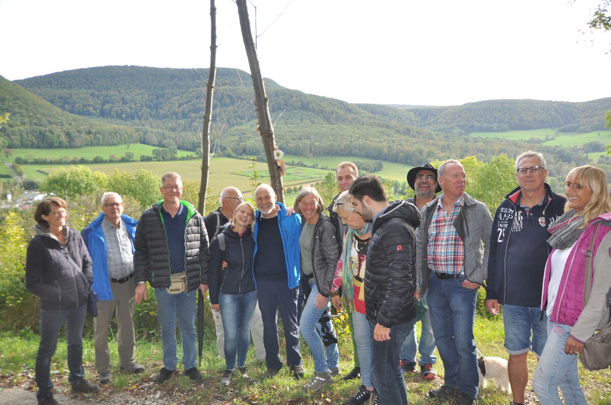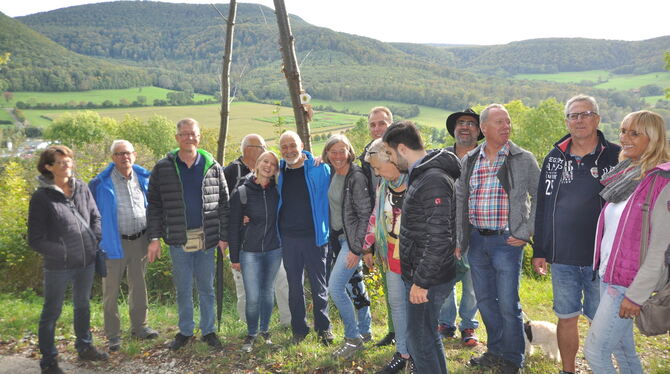 Für die zeitgemäße Beschilderung hat er sich Neues einfallen lassen, so gibt es nun genaue Entfernungsangaben etwa zu Aussichtsplätzen, Einkehrmöglichkeiten oder Ein- und Ausstiegsstellen. »Er hat die Initiative für die Restaurierung ergriffen, gründliche Vorarbeit geleistet und sie in Zusammenarbeit mit Rathaus und Heimat- und Geschichtsverein verwirklicht«, erklärte Forstrevierleiter Herbert Hanner den gut 50 Wanderern. »Auch der Forst ist mitbeteiligt an der Pflege«, erläuterte Bürgermeister Alexander Schweizer. Dadurch werde Naturgenuss entlang des Albtraufs und Waldrains erlebbar. Ein eigens darüber erstellter Flyer gibt Auskunft über Parkplätze und Details der 16,7 Kilometer langen Strecke mit teils schmalen Pfaden und einigen Treppen.