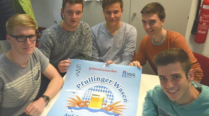 Organisieren den 2. Pfullinger Wasen: Lennart Müller, Moritz Müller, Eric Tröster (von der VfL-Ski-Jugendabteilung) und Tobias Schwarz und Johannes Wendelstein vom Jugendgemeinderat (von links). GEA-FOTO: BARAL