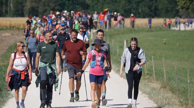 Gut gelaunt und bei optimalem Wetter machten sich 104 Wanderer auf die 24-Stunden-Tour. FOTOS: LENK