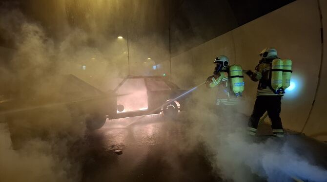 PFULLINGEN. Seit der Eröffnung 2003 leistet der Ursulabergtunnel als Ortsumfahrung der B 312 einen wichtigen Beitrag zur Entlastung der Straßen in Pfullingen. Rund 20.000 Fahrzeuge fahren täglich durch den Tunnel. Um für die Sicherheit der Verkehrsteilnehmenden zu sorgen, ist der Ursulabergtunnel mit modernsten Sicherheitseinrichtungen ausgestattet. Damit im Ernstfall auch alles reibungslos funktioniert und alle Beteiligten gut zusammenarbeiten, finden in Straßentunneln zudem turnusmäßig Vollübungen statt. Am Samstagnachmittag nahmen rund 350 Einsatzkräfte an einer solchen einsatznahen Großübung im Ursulabergtunnel teil.