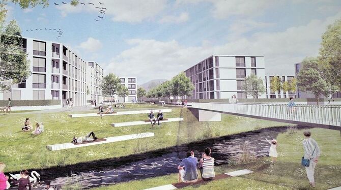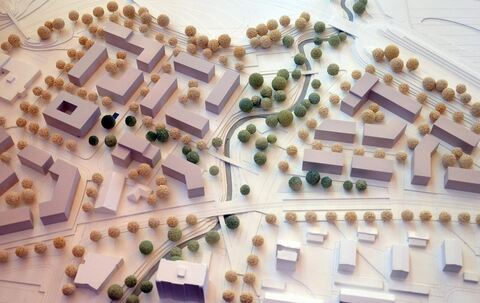 So stellen sich die Thomas Schüler Architekten aus Düsseldorf und die faktorgruen Landschaftsarchitekten aus Stuttgart das Quartier »Arbachpark« vor: Im Entwurf der Wettbewerbs-Sieger gruppieren sich offene Wohnhöfe um einen Quartiersplatz.