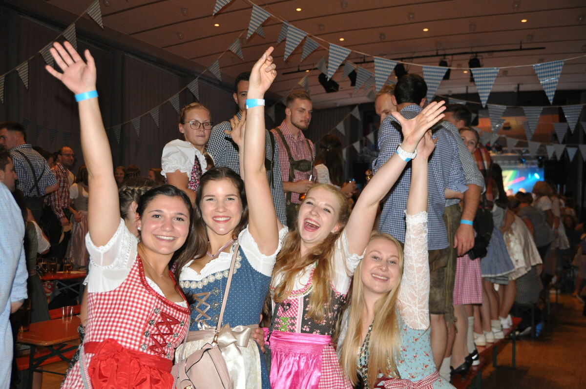 Darunter auch einige Sportgruppen, wie TSV Vorsitzender Rainer Hawel bemerkt hat. Wie die Volleyballer, die etwas später angerückt seien, weil sie zuvor noch ein Spiel zu bestreiten hatten. »Uns gefällt es hier, es ist eine super Stimmung«, sind sich Lina und ihre Mädchenclique einig. Das geht auf das Konto der Blechbläserband »ob8blech« mit Sängerin Linda Herzog.