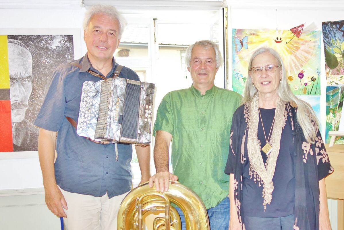 Konzert mit Lesung im Paul-Jauch-Haus: Stefan Labude (von links), Joachim Stahl und Heidemarie Köhler. FOTO: BÖHM