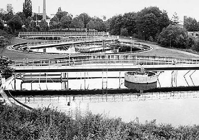 Die Klärbecken des Sammelklärwerks Oberes Echaztal in Pfullingen. Der Fremdwasseranteil ist sehr hoch.