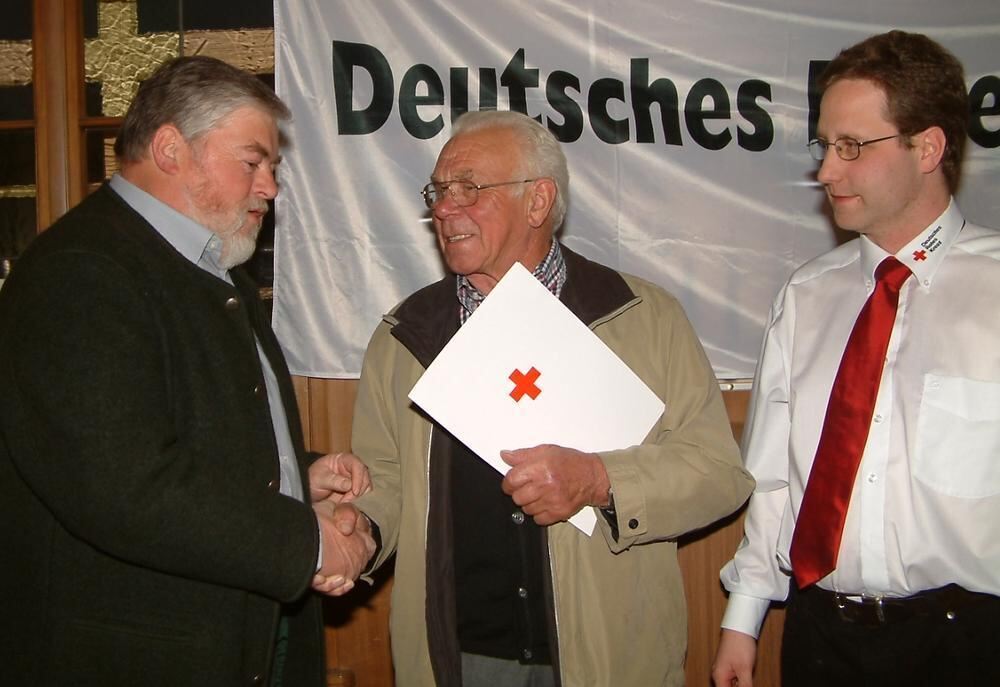 Bei der Ehrung (von links): Joachim Reiff, Richard Rauscher, DRK-Ortsvereinschef Dirk Kempelmann. FOTO: KABLAOUI