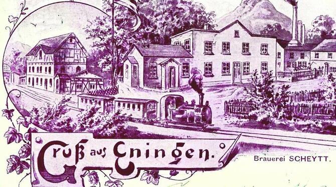 Eninger Idylle mit Bierbrauerei und Büschelesbahn sowie dem künstlerisch verschobenen Bahnhof. GEA-REPRO