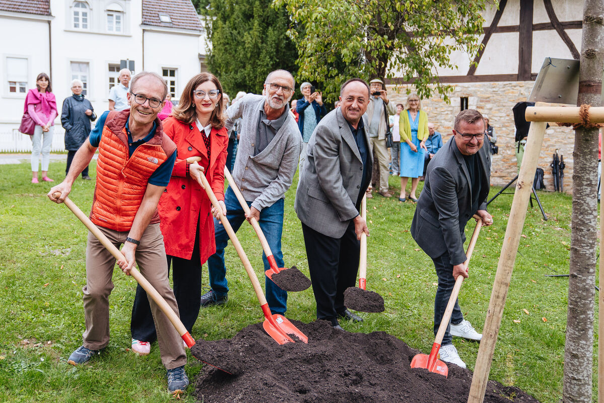Im Anschluss wurde zu den Klängen der Musiker mit vereinten Kräften das Baumloch verfüllt. Ulrike Schmid dankte der Stadt Pfullingen für die tatkräftige Hilfe beim Planen und Pflanzen des prächtigen Baums und stellte in Aussicht, dass der Arbeitskreis im nächsten Jahr ein schönes »Bänkle« organisieren wird. (eg)