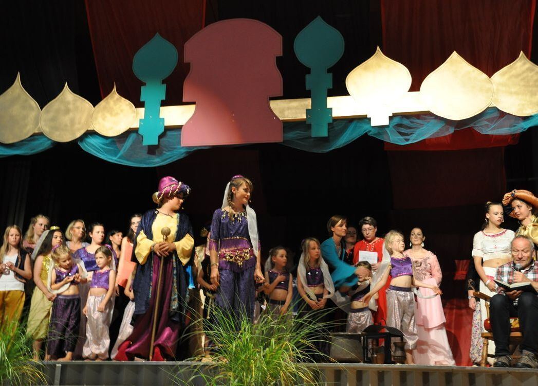 »Großvater« Manfred Ludwig (rechts) erzählt die Geschichte vom »kleinen Muck«, die 60 Mitwirkende begeisternd umsetzten. FOTO: SEITZ