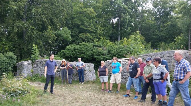 Der Historiker und Burgenexperte Michael Kienzle erläuterte rund 30 Gästen die Greifensteiner Burgen. FOTO: BÖHM