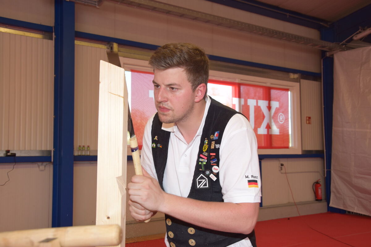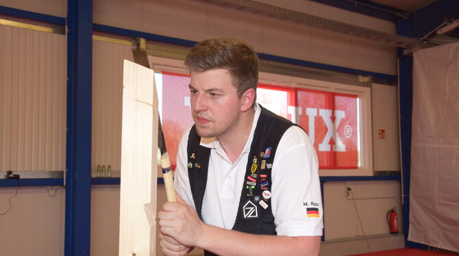 Konzentration beim Sägen: Marcel Renz und seine Teamkollegen wetteifern in Luxemburg mit neun weiteren Mannschaften um den Europameistertitel. FOTO: HOLZBAU DEUTSCHLAND