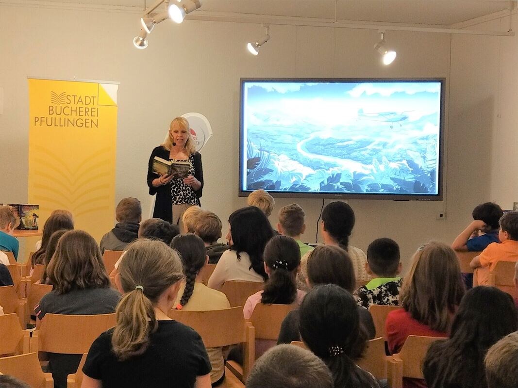 PFULLINGEN. Den Spaß am Lesen wecken und das Lesen fördern: Das möchte die Sommerleseclub-Aktion »Heiß auf Lesen«. Das Projekt, das Kinder und Jugendliche in ganz Baden-Württemberg ansprechen soll, wird bereits zum achten Mal im Regierungsbezirk Tübingen von der Fachstelle für das öffentliche Bibliothekswesen koordiniert, Schirmherr ist Regierungspräsident Klaus Tappeser. Der Startschuss fürs ganze Ländle mit 37 teilnehmenden Stadt- und Gemeindebibliotheken fiel am Montagvormittag mit Schulklassen der Pfullinger Schloss-Schule in der Stadtbücherei Pfullingen. Schriftstellerin Barbara Rose stellte dort ihr Buch »Whisper World« vor, in dem eine Gruppe von Kindern zu Tierflüsterern und Tierrettern ausgebildet wird.