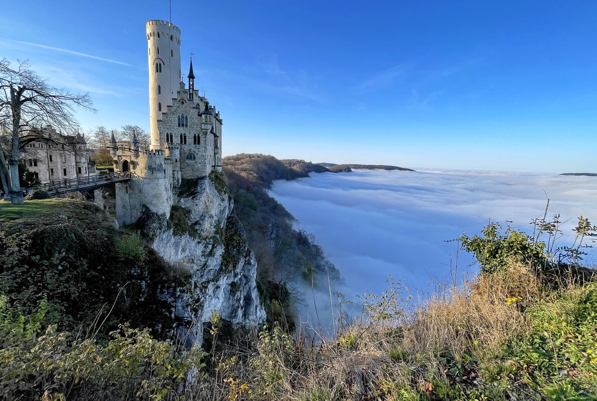Wiesen, Wälder und Wacholderheiden säumen die Route vorbei am Schloss Lichtenstein, der Nebelhöhle und dem Kornbühl. Am Schiefererlebnis Dormettingen können Interessierte im Steinbruch nach versteinerten Resten von Sauriern oder Meerestieren suchen. Bevor die Tour am Bodensee endet, kann das einzigartige Naturphänomen der Donauversickerung in Immendingen und ihr Wieder-austritt in Deutschlands größter Quelle, dem Aachtopf, bestaunt werden. (eg)