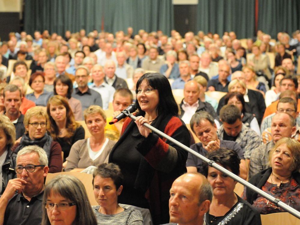 Gespannt lauschten die Pfullinger den Reaktionen der drei Kandidaten auf dem Podium – vor allem bei den Publikumsfragen, hier Irmtraud Beck-Awwad, wurde es sehr konkret.