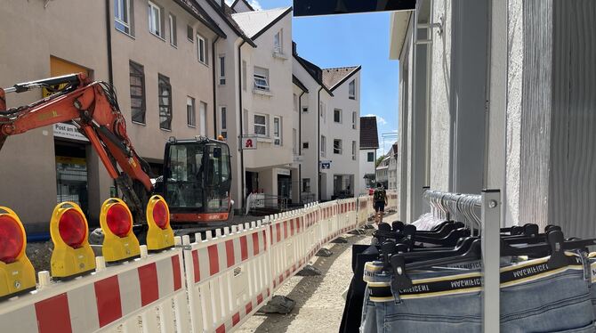 PFULLINGEN. Dass der größte Teil des Marktplatzes nicht nur fertig gepflastert, sondern auch im besten Sinne voll bespielbar ist, dürften die meisten Pfullinger am Weihnachtsmarktwochenende bereits selbst miterlebt haben. Ganz am Ende sind die Arbeiten an der neuen Pfullinger Mitte jedoch noch nicht – auch das sieht, wer etwa einen Blick auf den Kirchenhain wirft, der bislang noch ohne Bepflanzung ist, oder beim Weg durch die Kirchstraße die Absperrungen vor den Arkaden entlanggeht. Diese im wahrsten Sinne des Wortes offenen Stellen werden noch bis ins neue Jahr Baustelle bleiben, längstens bis zum April 2023, so rechnet das städtische Tiefbau-Team.