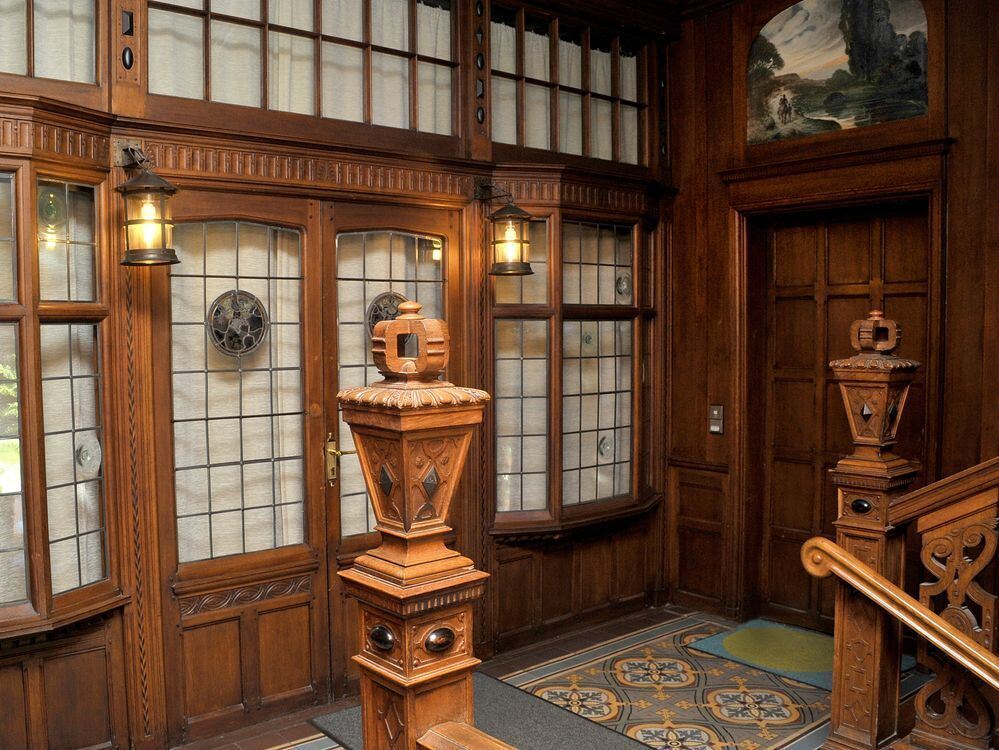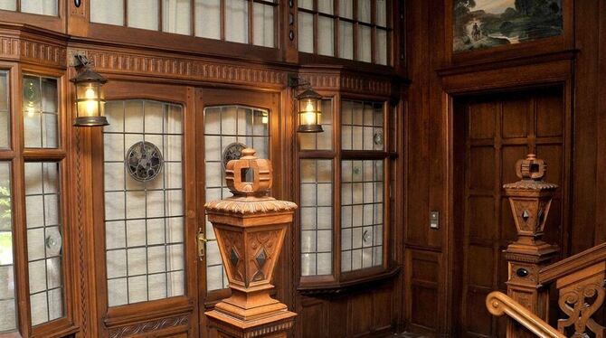 In der von Architekt Hermann Zwißler gebauten Villa Laiblin, Hochparterre: Vor dem Durchgang zur Arztpraxis, nach links geht's zur Ausstellung.