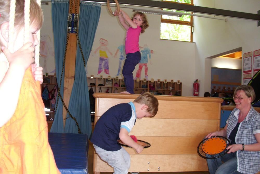 Keine Angst vor Turngeräten: Im Bruckbergkindergarten ist Bewegung angesagt, sagt Sabine Beck (rechts).