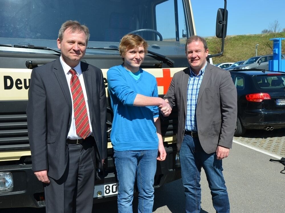 Ein junger Mann wird ernst genommen: DRK-Kreisgeschäftsführer Michael Tiefensee (links) und MdL Andreas Glück, Präsident des DRK-Kreisverbands Reutlingen (rechts), haben mit Leo Konrad über seine Initiative »Blutspende ab 16 Jahre« gesprochen.