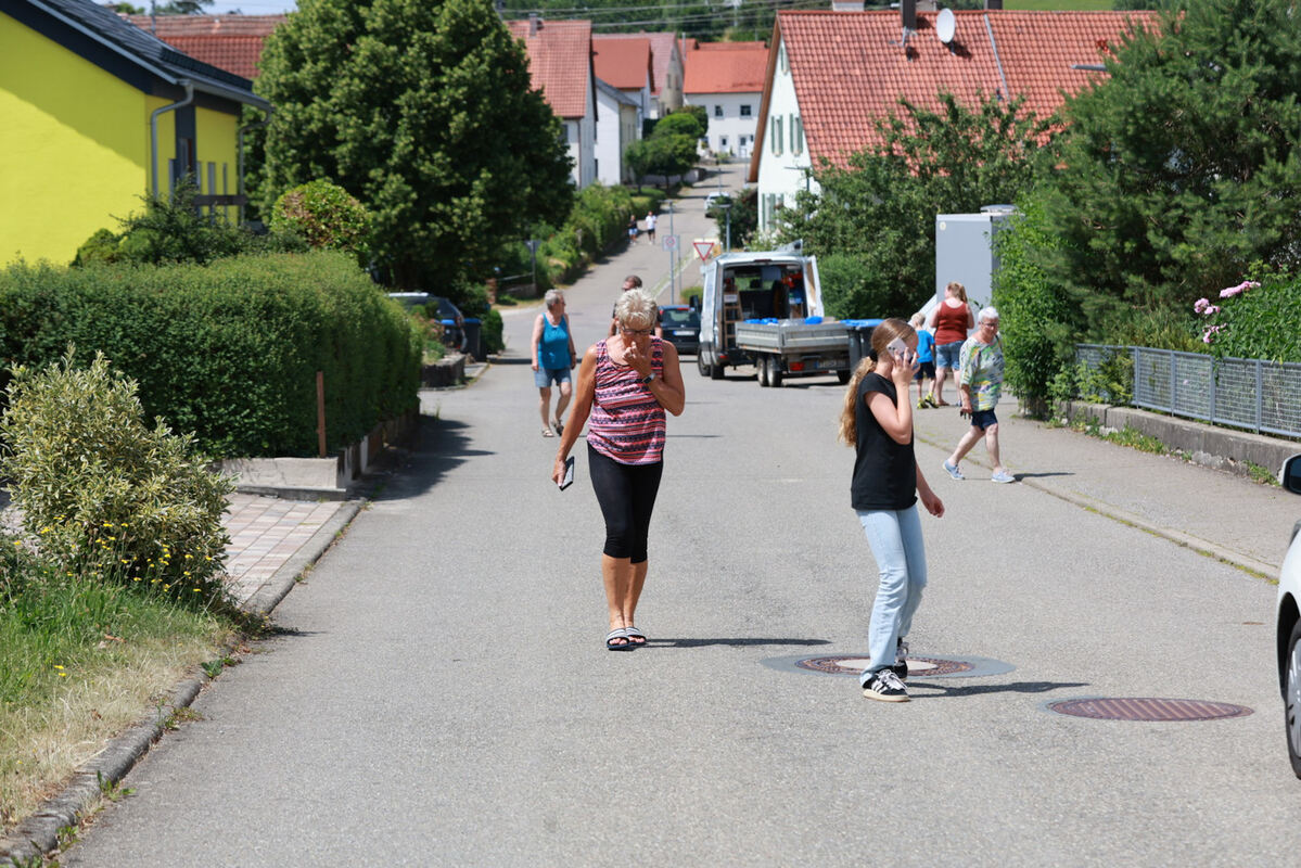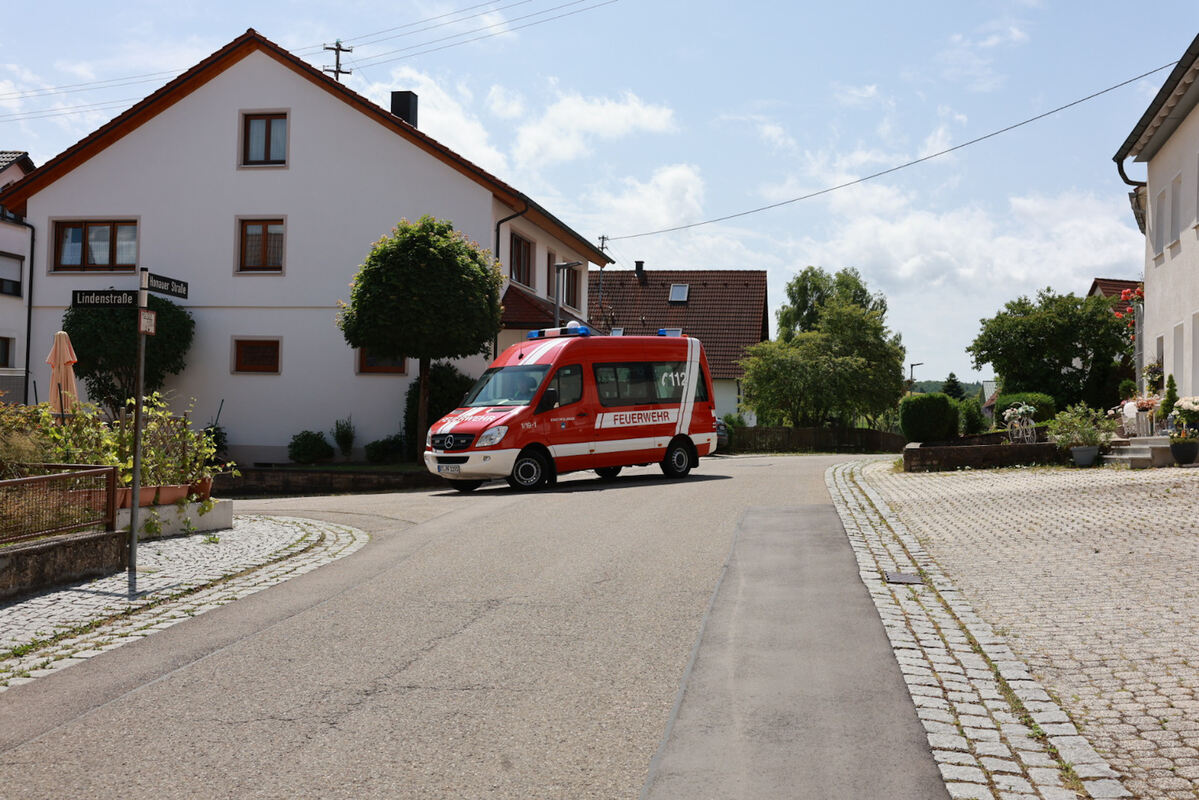 Deshalb entscheidet sich die Feuerwehr um Kreisbrandmeister Wolfram Auch, die sich von Fachkräften der Werksfeuerwehr Bosch beraten lässt, sowie die Gemeinde, vertreten durch Bürgermeister Peter Nußbaum und Hauptamtsleiterin Beatrice Herrmann, für Evakuierung. In einem Umkreis von 200 Meter müssen die Anwohner ihre Häuser verlassen. Das gab es in Holzelfingen laut Herrmann noch nie. Sie koordiniert den zivilen Teil der Rettungsaktion.