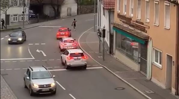 Clip geht viral: Halbnackter Mann stoppt Autos in Eningen