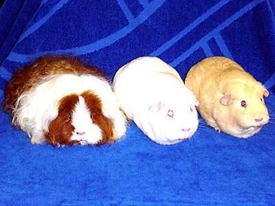 Die Show-Sieger (von links): 1. Platz Consuela vom Dreiländereck, Texel rot-weiß von Christiane Mayer; 2. Platz Snow Star 3 zur Teutoburger Senne, Glatthaar weiß p.e. von Thomas Heini und 3. Platz Lady in Cream of Sunny Garden, Glatthaar creme von Thomas Heini.