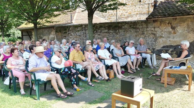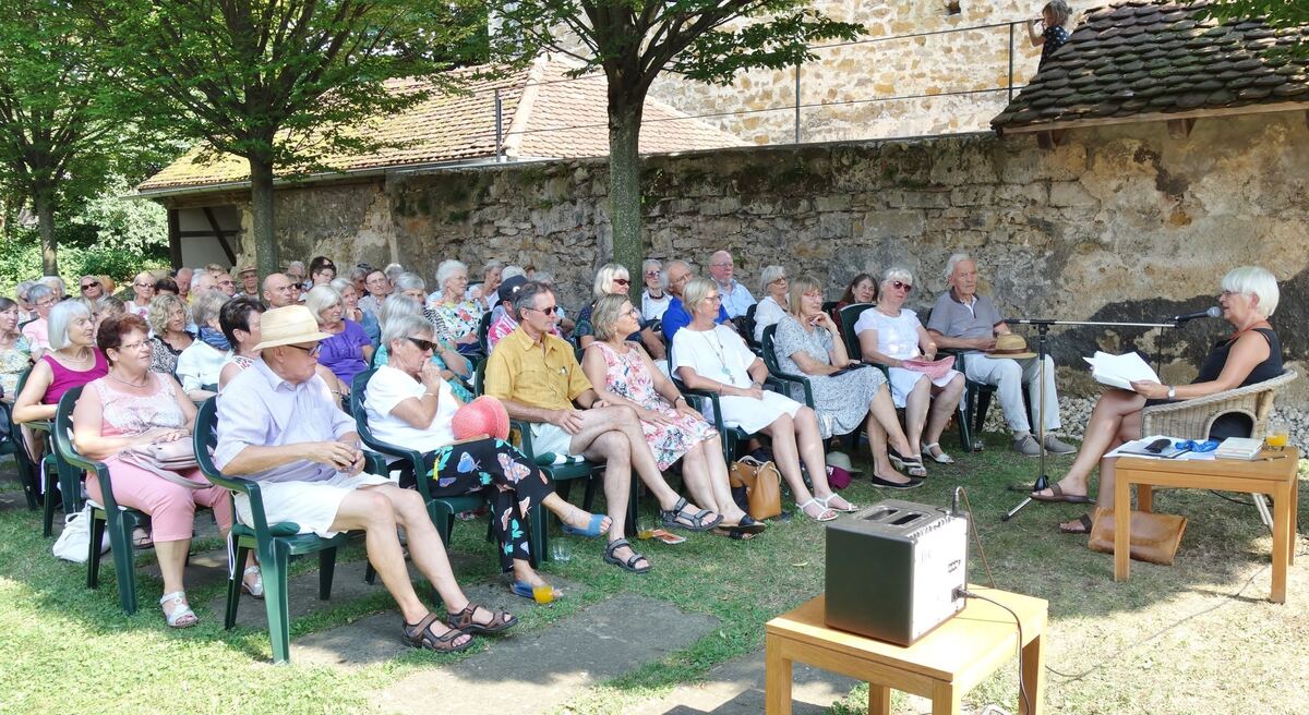 Felicitas Vogel las im Klostergarten in der Reihe »Literatur und Limo« aus Briefen und Gedichten von Peter Härtling.