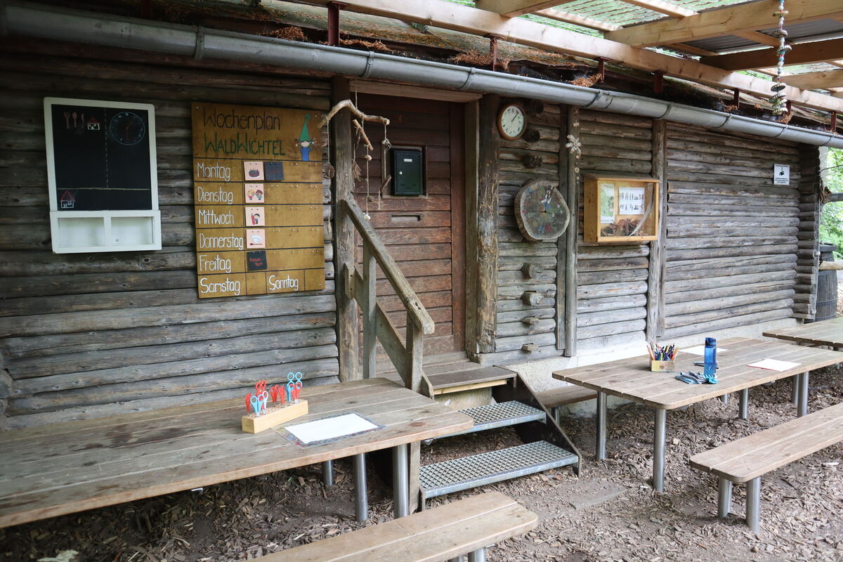 Die Jagdhütte, in der die Kids des Waldwichtel-Kindergartens bei Kälte Schutz finden können, stand schon, bevor der Kindergarten gegründet wurde.