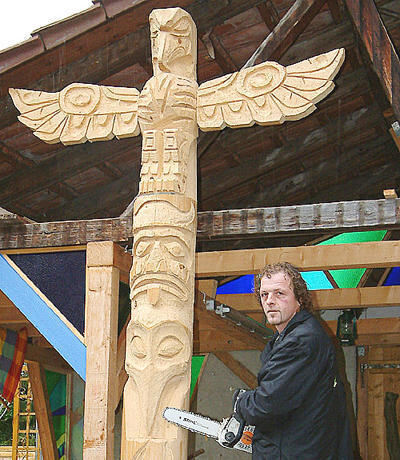 Drei Meter hoch ist Walter Schwarz' erster Totempfahl.