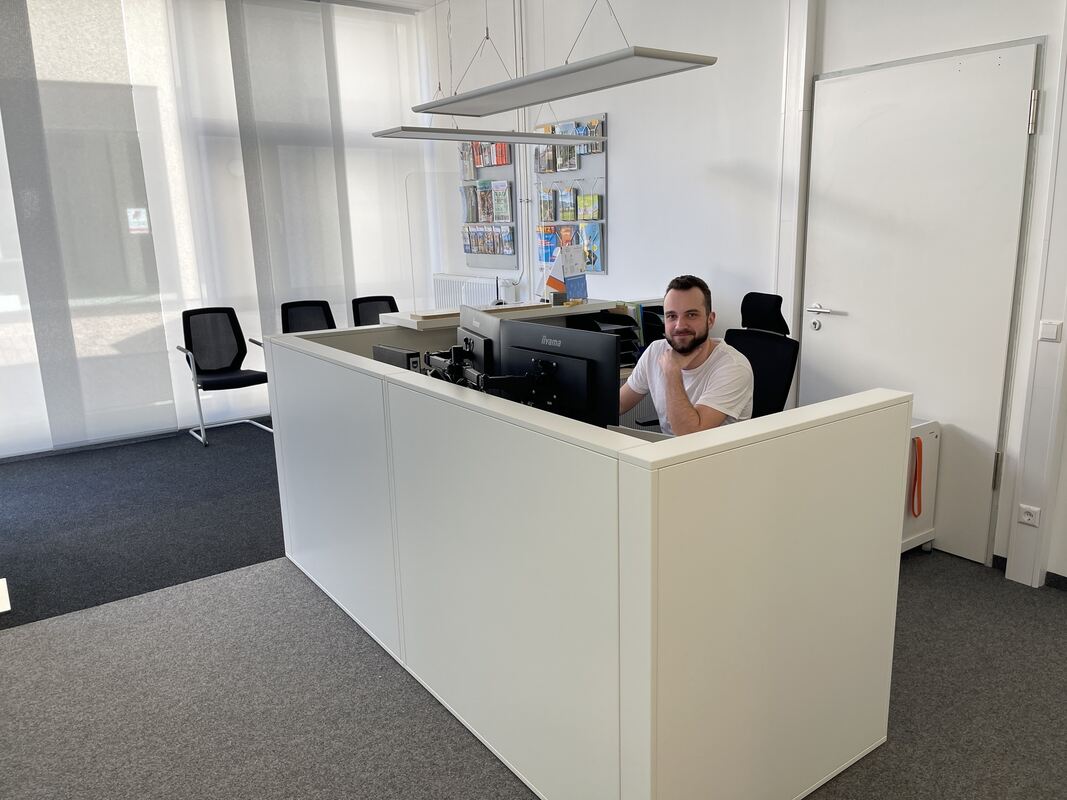 Freuen sich über den Start des neuen Bürgerservice in der Kirchstraße: Bürgermeister Stefan Wörner (links), Carolin Veith vom Gebäudemanagement und Barbara Grulke, Leiterin des Fachbereichs 2 – Bürgerservice, Ordnung und Soziales.