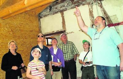 Da oben ist vieles neu gemacht, erklärt Klaus Beck den Besuchern die Sanierung des alten Honauer Bahnhofs.