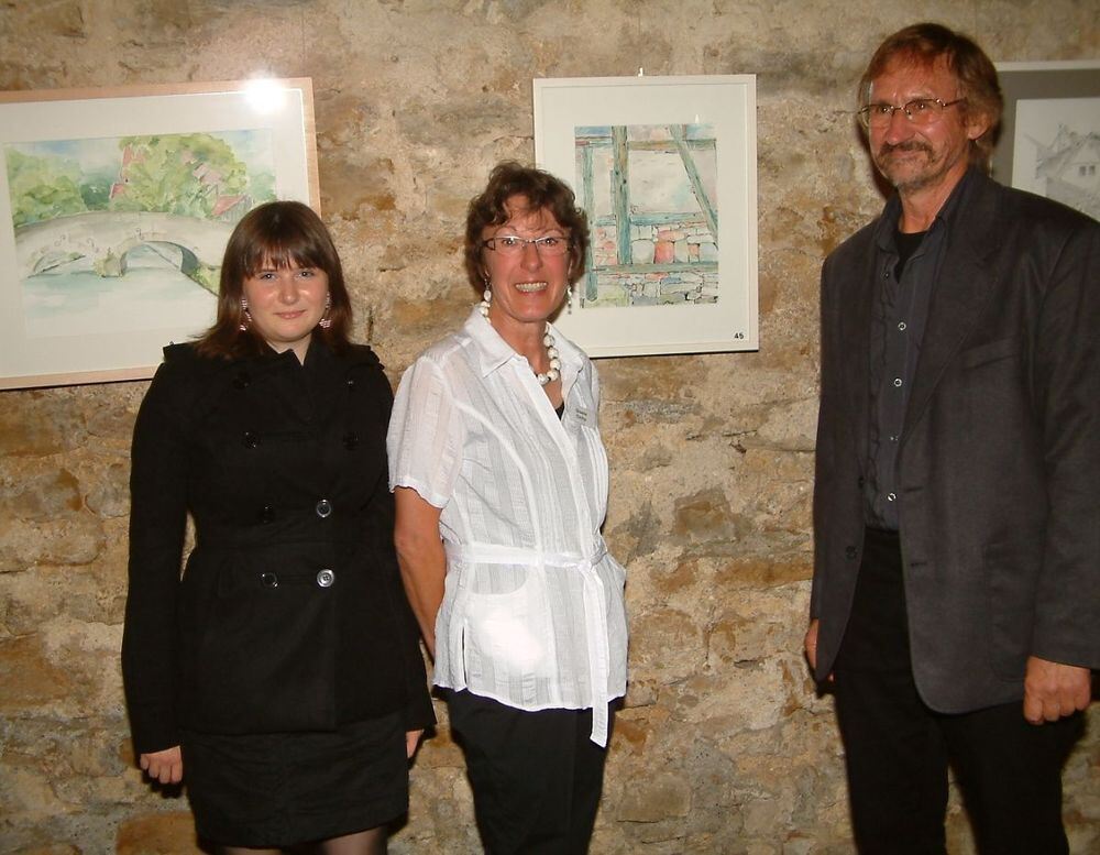 Gisela Cichy (Mitte) und ihre Schüler Katja Keller und Volkmar Härtel in der Klosterkirche.