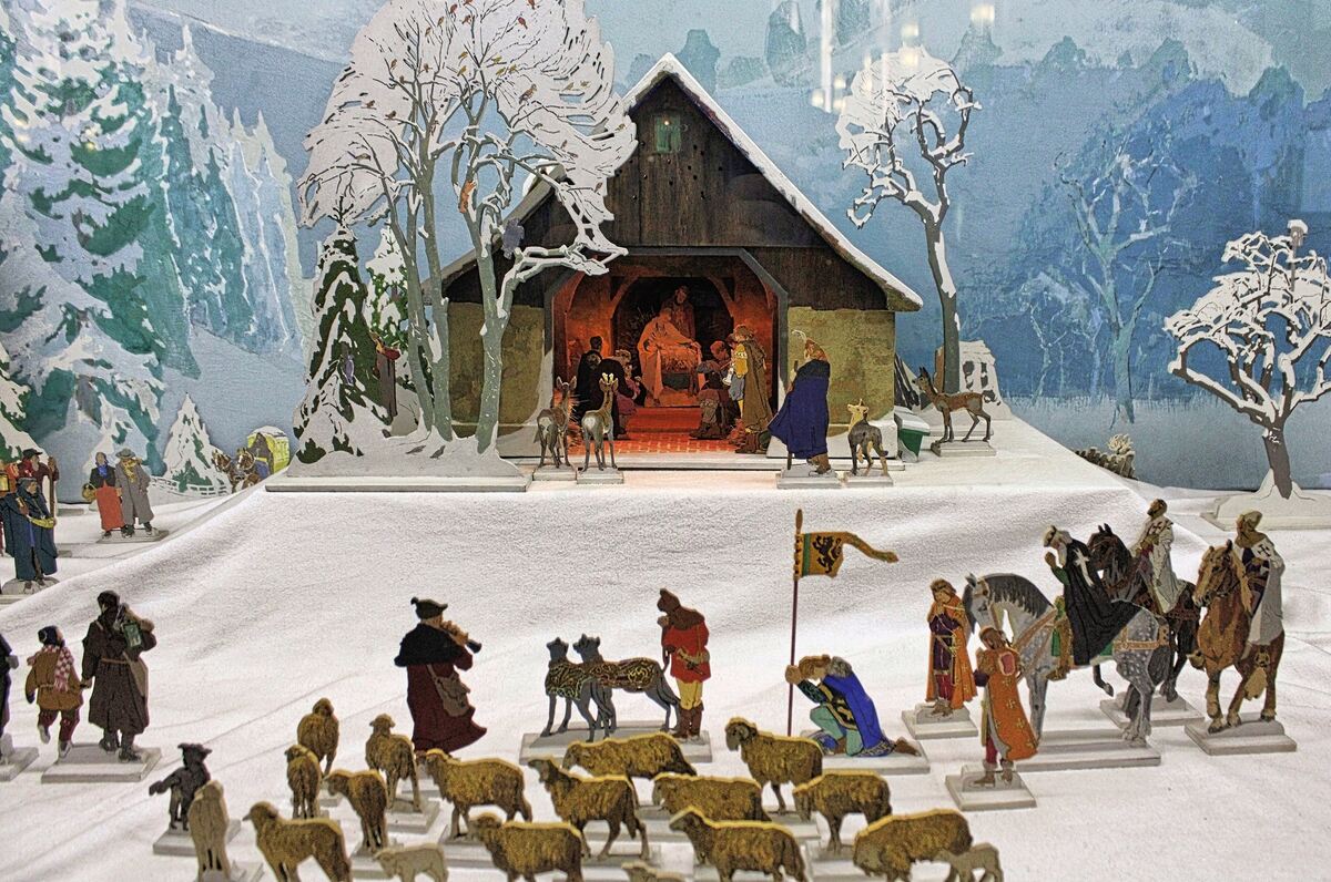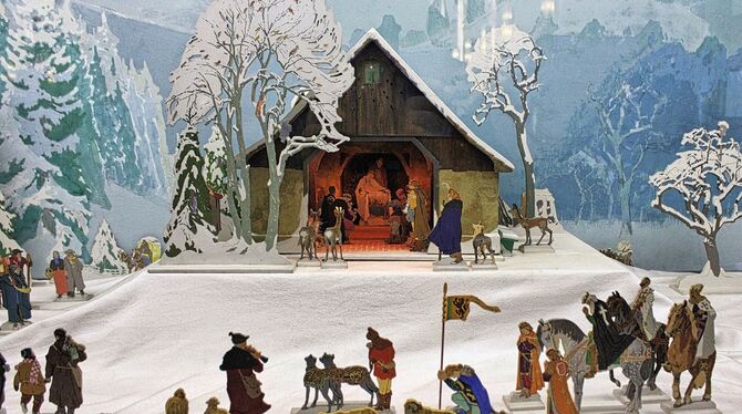 ENINGEN. In der Andreaskirche ist jetzt wieder die große Krippe zu bewundern, die der bekannte Künstler Paul Jauch und seine Ehefrau Emilie gegen Ende der 1930er-Jahre gestaltet haben. Paul Jauch entwarf und bemalte die Figuren, Emilie schnitt sie mit der Laubsäge aus. Fortlaufend wurden die Bilder ergänzt, bei denen es sich lohnt, ein Weilchen stehenzubleiben und die Hirten, Könige oder Wanderer zu betrachten. 1959 kam die gemalte Achalm als Hintergrund dazu. Neu sind in diesem Jahr die Texte, die Ingrid Schaar anhand der Figuren entworfen hat und die zum Nachdenken anregen. Sie schuf auch zwei Blätter, mit deren Hilfe man die gemeinten Darstellungen finden kann. Die Andreaskirche ist täglich von 10 bis 18 Uhr geöffnet. (GEA)