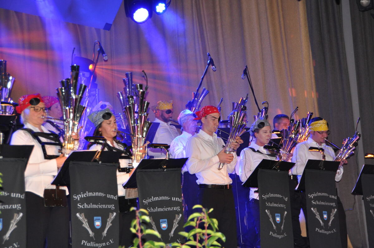 Verwegen mit Augenklappe und Kopftuch: die Musiker des Spielmanns- und Schalmeienzugs bei den Stücken zu »Fluch der Karibik«. FOTO: BIMEK