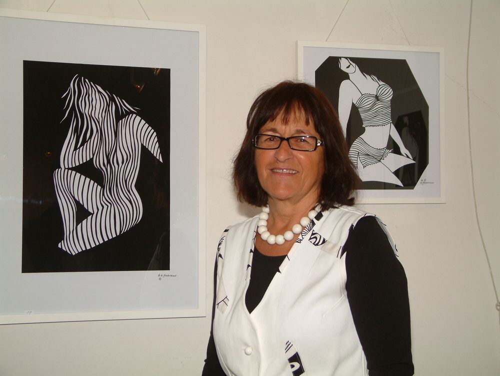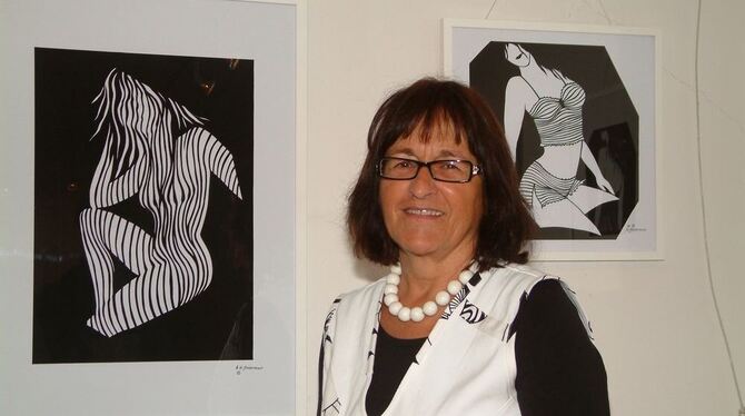 Die Scherenschnittkünstlerin Magdalene Glasbrenner aus Unterhausen zeigt ihre filigranen Werke noch bis Mitte Oktober im Paul-Jauch-Haus in Eningen. FOTO: KABLAOUI