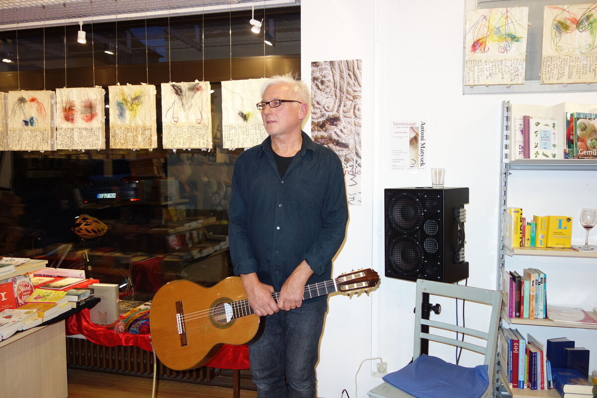 Antoni Matysek ist nicht nur Künstler sondern auch Musiker. Die musikalische Umrahmung der Vernissage übernahm er selbst. foto: böhm