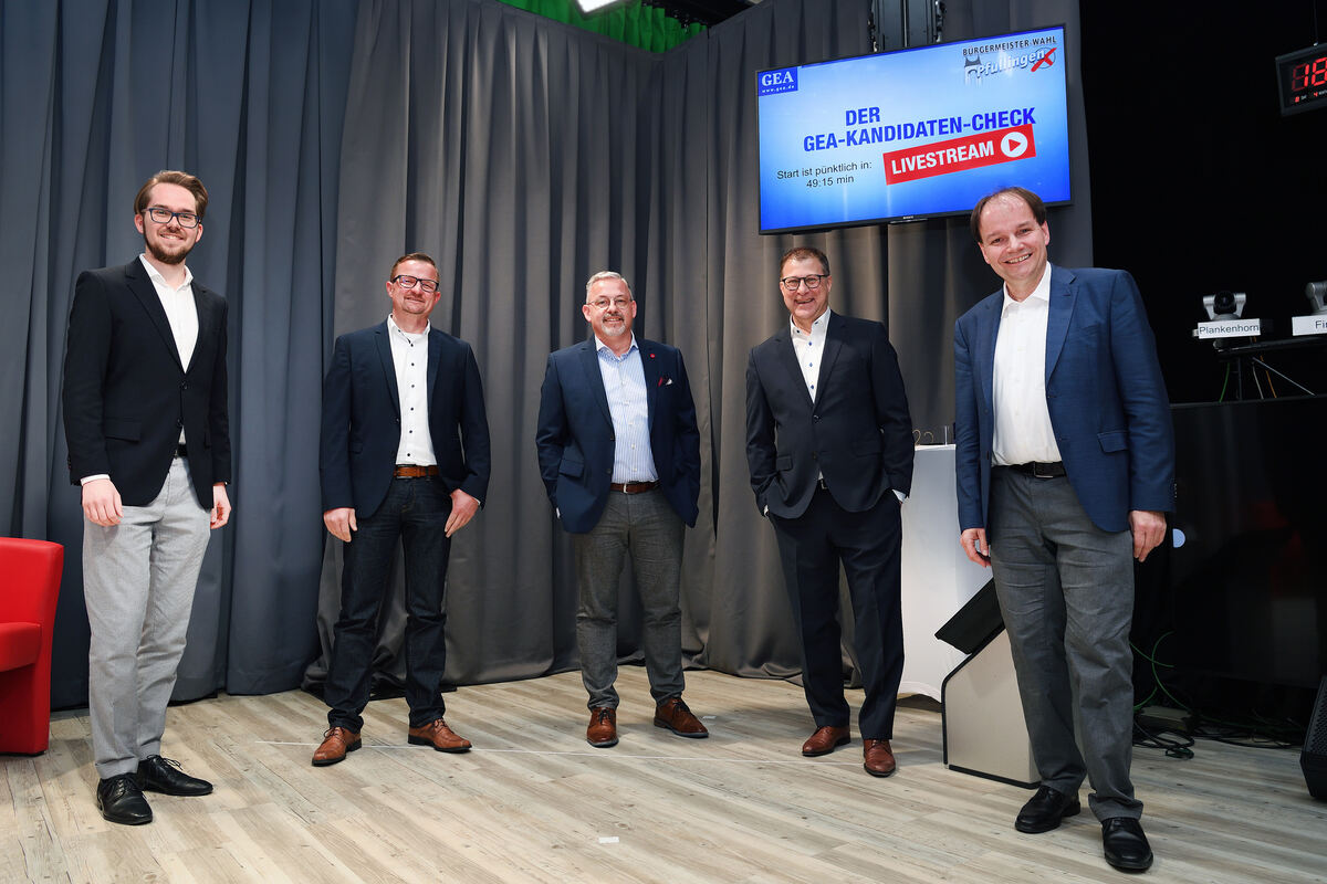 Fünf Männer wollen Bürgermeister werden: Timo Plankenhorn (von links), Stefan Wörner, Sven Bohnert, Detlev Gottaut und Martin Fink. FOTO: PIETH