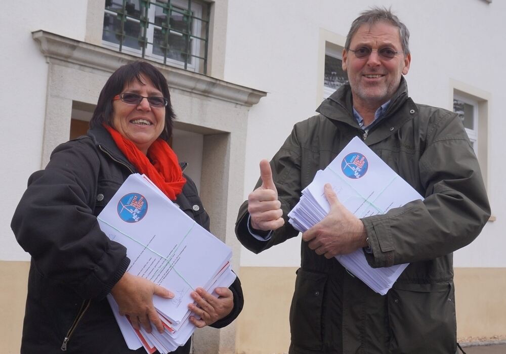 Sabine Wälder und Winfried Schneider haben für die Interessengemeinschaft »Rettet den Lichtenstein« Einwendungen gegen den Bau des Windparks Hohfleck gesammelt. FOTO: PRIVAT
