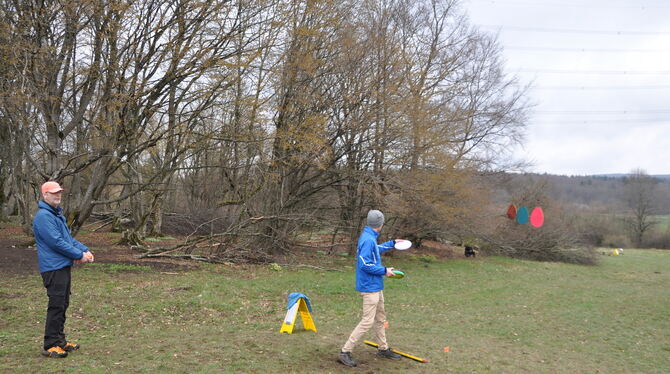 Disc-Golf-Parcours auf der Eninger Weide: Ostereier im Visier
