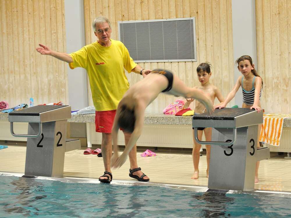 »Und Absprung -« Lichtensteins scheidender DLRG-Vorsitzender Klaus Dieter Höhne beim Jugendtraining.