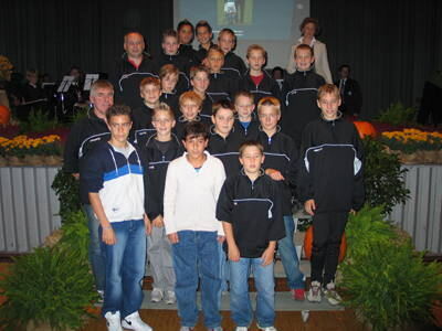 Für die D- und E-Jugend-Fußballer des TSV war's ein cooler Abend; hinten rechts: Bürgermeisterin Margarete Krug.