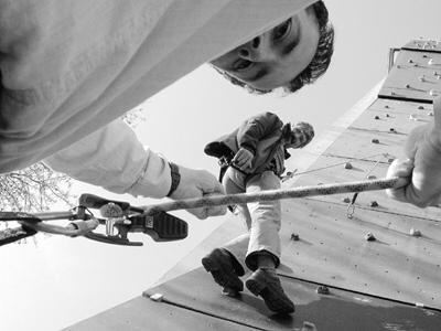 Stolze Erfinder: Thomas Reinhard und Erwin Angermann führen ihre Seilwinde vor.