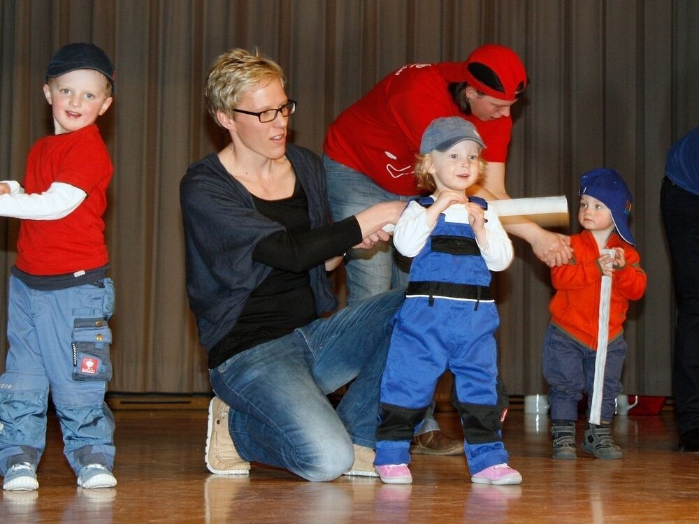 Die Allerjüngsten des Vereins zeigten gemeinsam mit ihren Eltern eine Feuerwehr-Gymnastik.