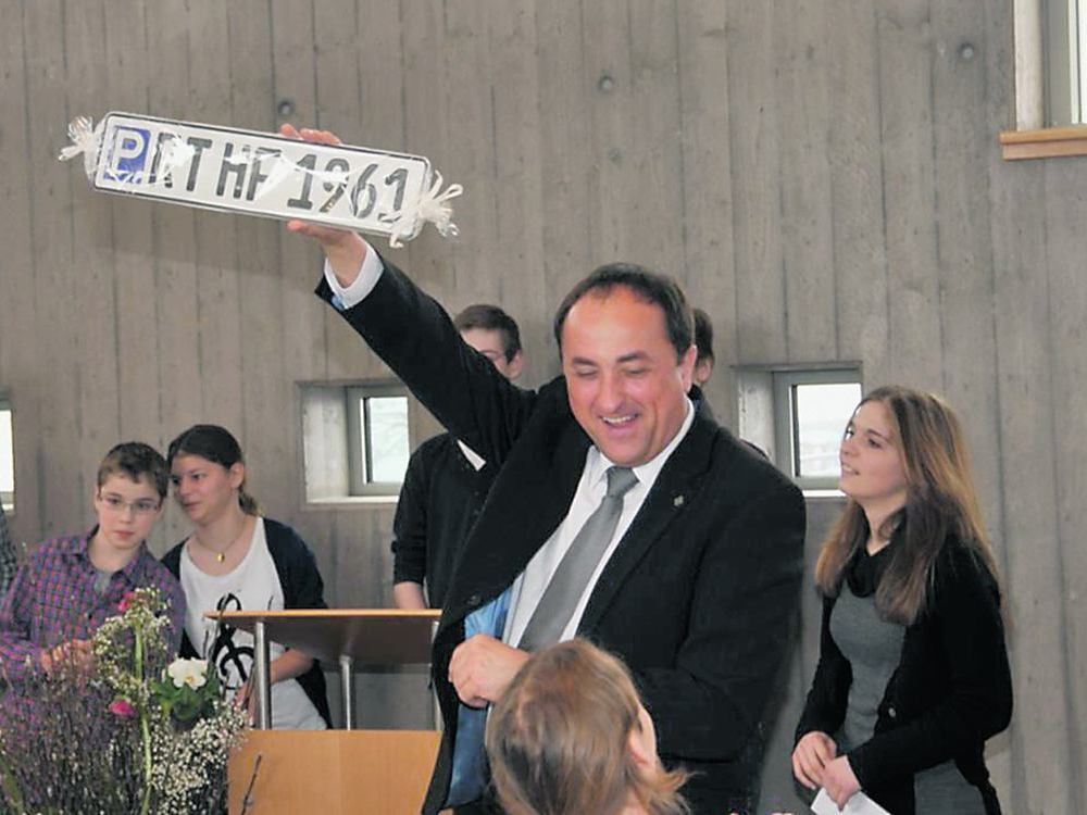 Willkommensgruß für den neuen Pfarrer Hermann Friedl in Bruder Konrad. FOTO: PR