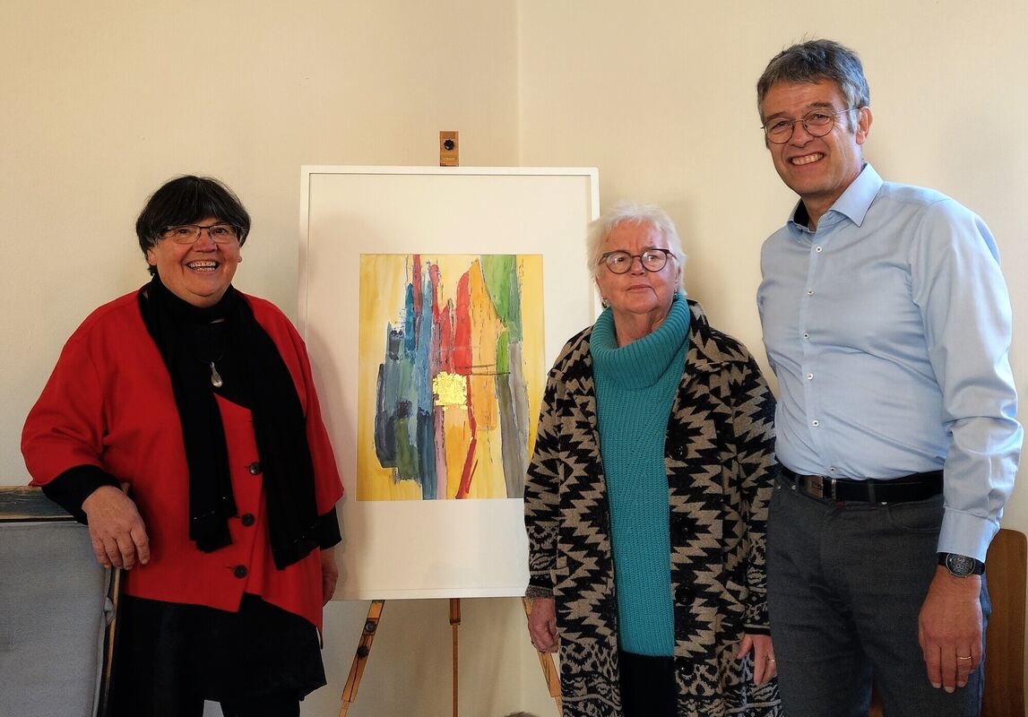 Sie haben jetzt das Café Duft für die Bevölkerung geöffnet: Renate Duchesnes (von links), Künstlerin Marianne Bauer-Stooss, und Wolfgang Hanle. FOTO: BÖHM