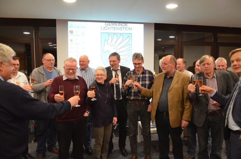 Das musste schon sein: ein Glas Sekt zwischen öffentlicher und nicht öffentlicher Sitzung auf die gute Nachricht aus Berlin. GEA-FOTO: US