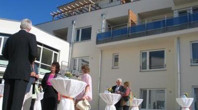 Ehrengäste, Handwerker, Bewohner und Mitarbeiter verfolgten den Festakt und genossen anschließend die freundliche Stimmung im Hof des Seniorenzentrums.
