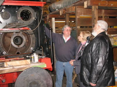ZHL-Chef Herbert Maier (links) zeigte den Kittel-Nachfahren die Konstruktion ihres Groß- und Urgroßvaters. Enkelin Marie Rademacher und Michael Rademacher waren begeistert.