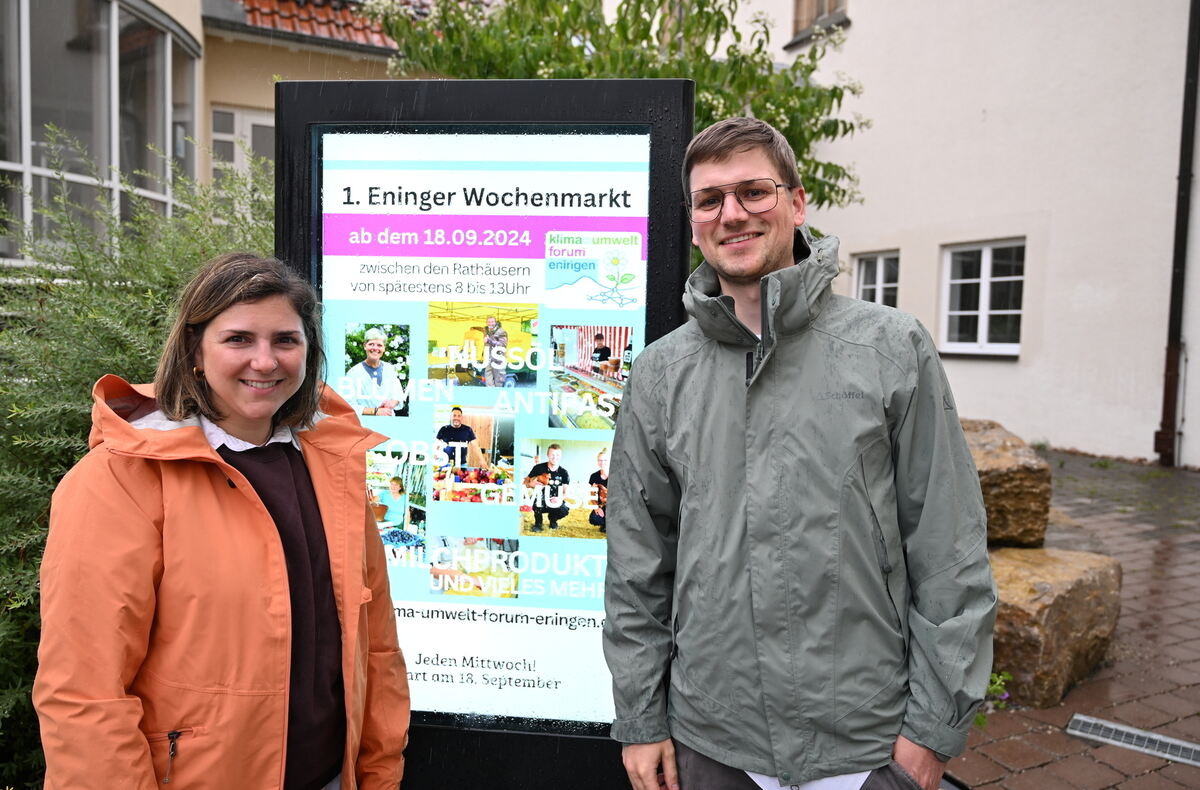 Samra Kanaan und Matthias Ruf gehören zum Organisationsteam des ersten Eninger Wochenmarkts.
